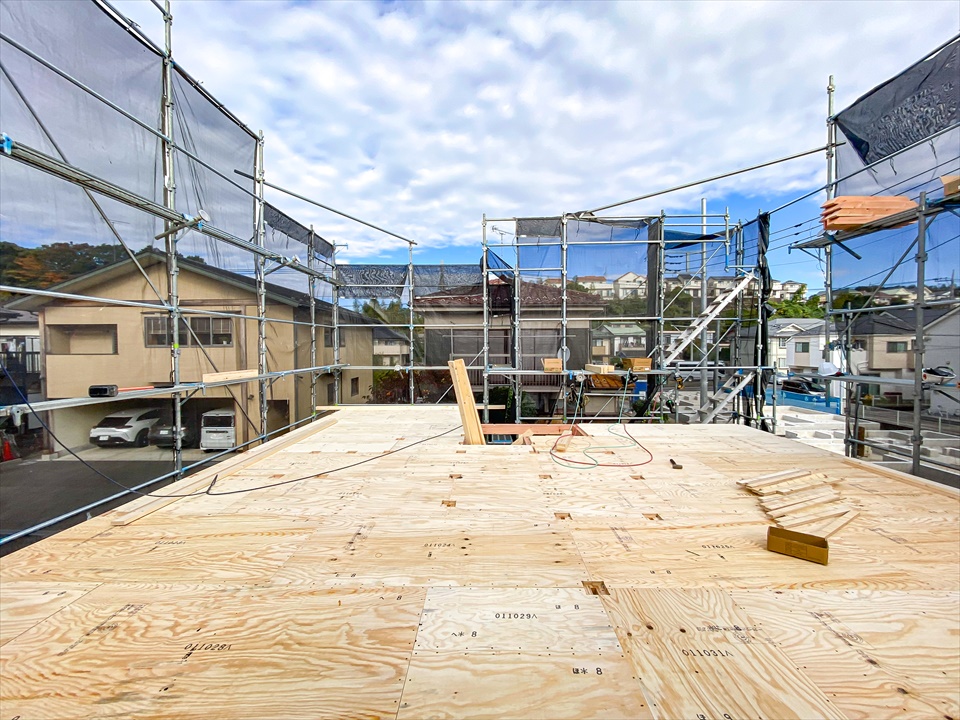 自社物件 新吉田東5丁目Ⅲ 新築戸建ての建方が始まりました。