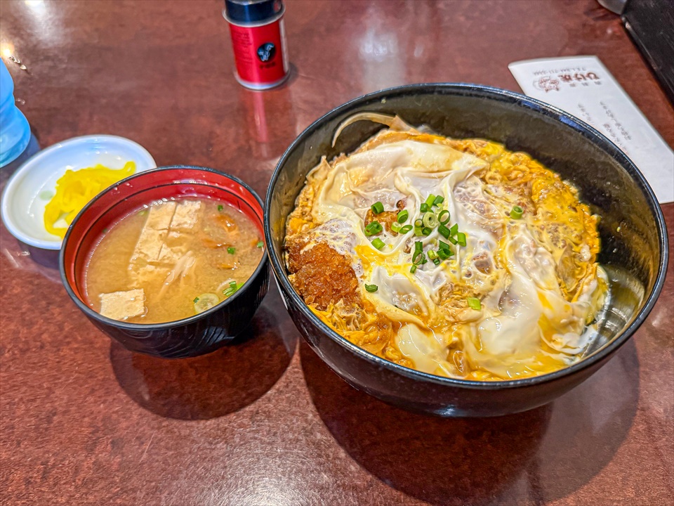 昼ごはん何を食べようか迷いながら歩いていると「ランチ カツ丼」が目に入り、吸い寄せられるよう入店。