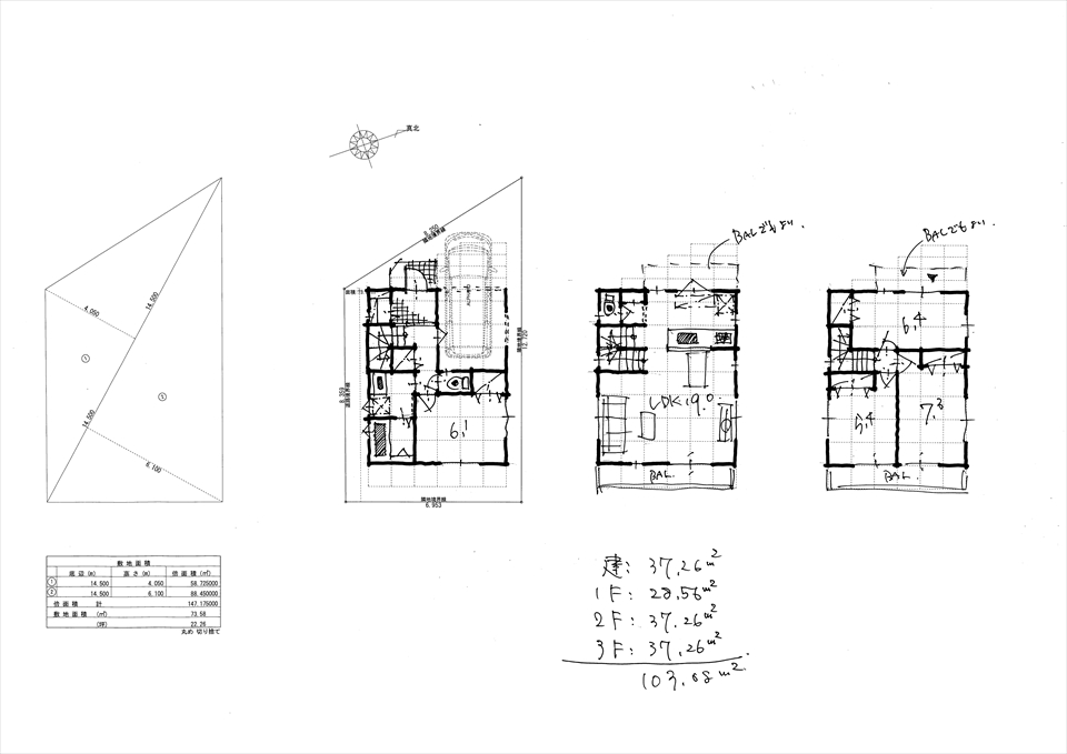 取得予定の横浜市港北区エリアの新規分譲企画の参考プランが届きました。