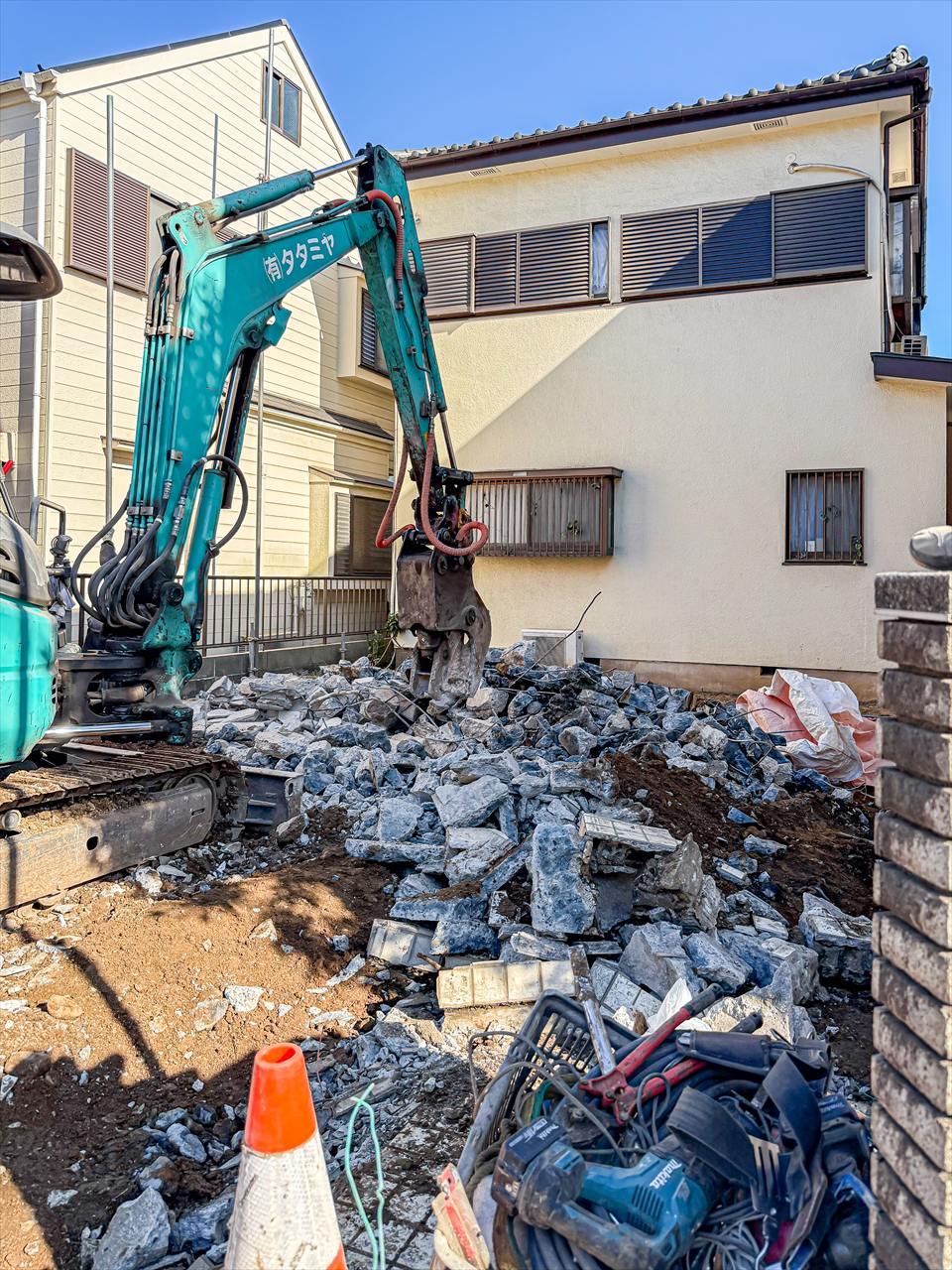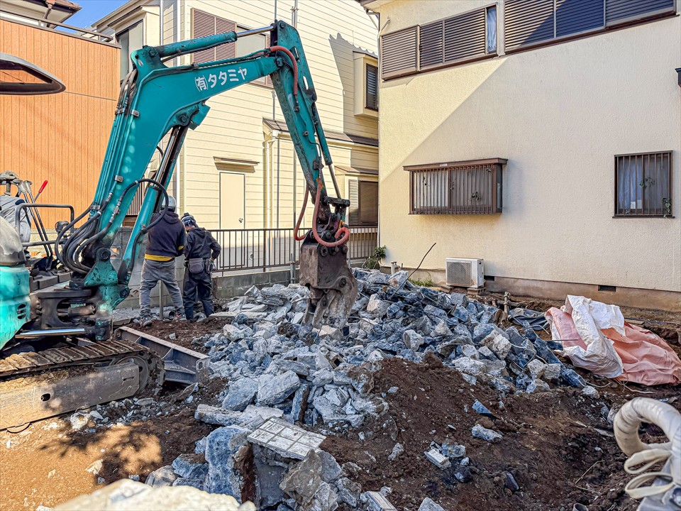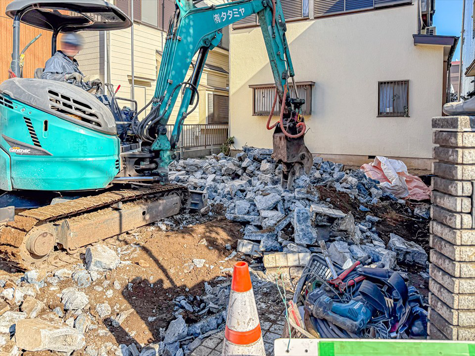 上物の解体工事が終わりましたが、前所有者の増築時に施工されたと思う床下コンクリートが現れました。