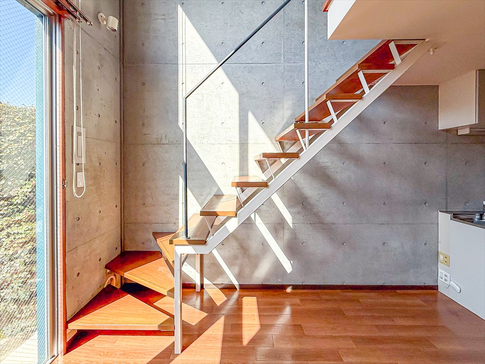 吹抜け南側の高い窓から優しい自然光!明るいお部屋です。