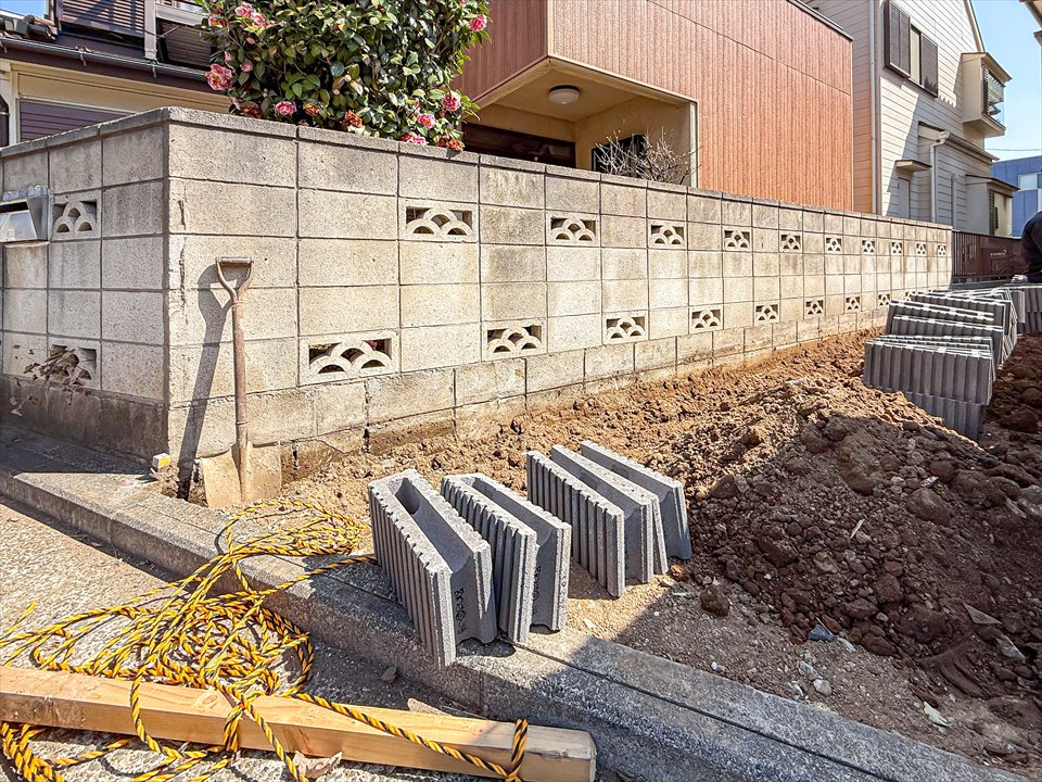 自社物件 新吉田東3丁目Ⅲ 新築戸建の先行ブロック工事です。
