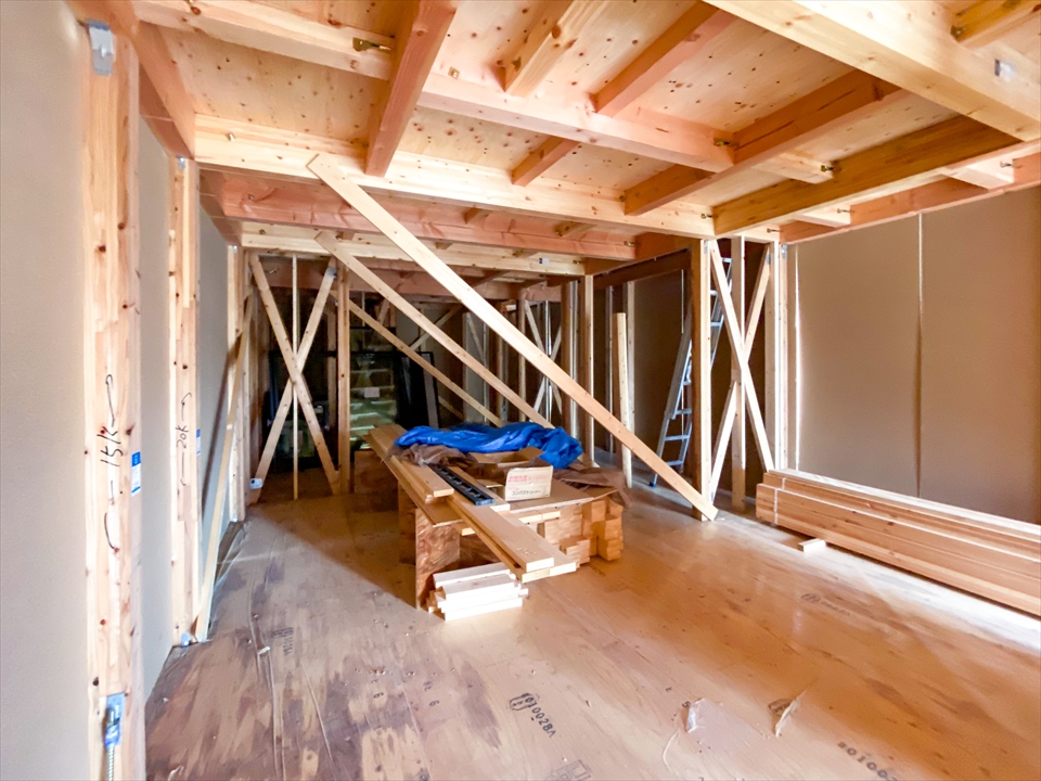 現場監督から特に問題ありませんとの報告でございました。大工さんのスケジュールで少し空いてしまっていますが、建物内に入ると室内の広さも分かりやすく、これから窓の開口部分が施工されれば採光なども確認できますね。