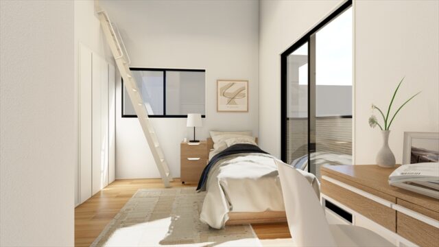 宅配ボックスも予定していますが、まだ製品が決まっていないのでパースには描いていません、、、