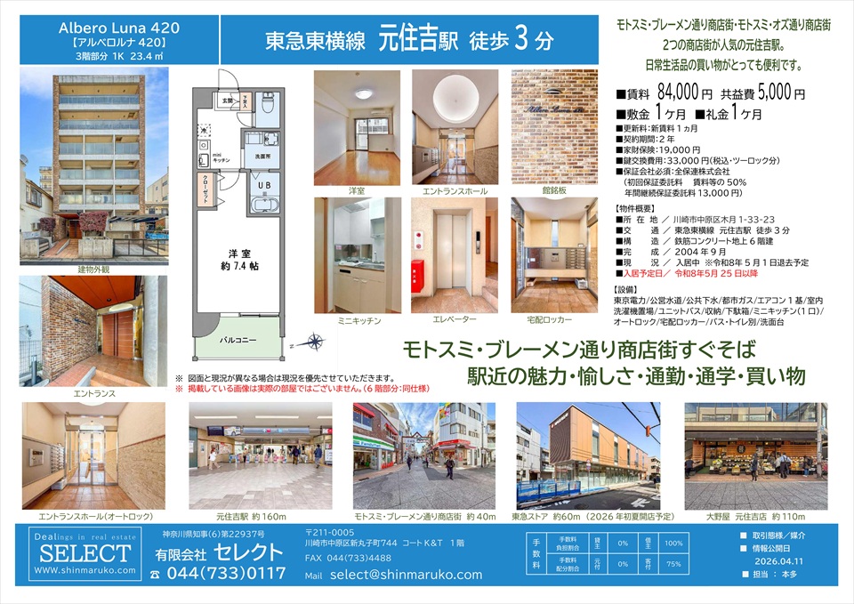 | 交通 | 東急東横線 元住吉駅 |